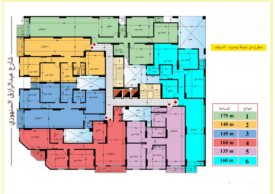 Located in Al-Seyouf, Alexandria, this project stands with an impressive modernized take on classic architectural style. Spanning six floors, it features six distinct apartments on each level, blending timeless elegance with contemporary amenities. Its façade boasts refined details and clean lines, offering a sophisticated look while accommodating modern living standards.